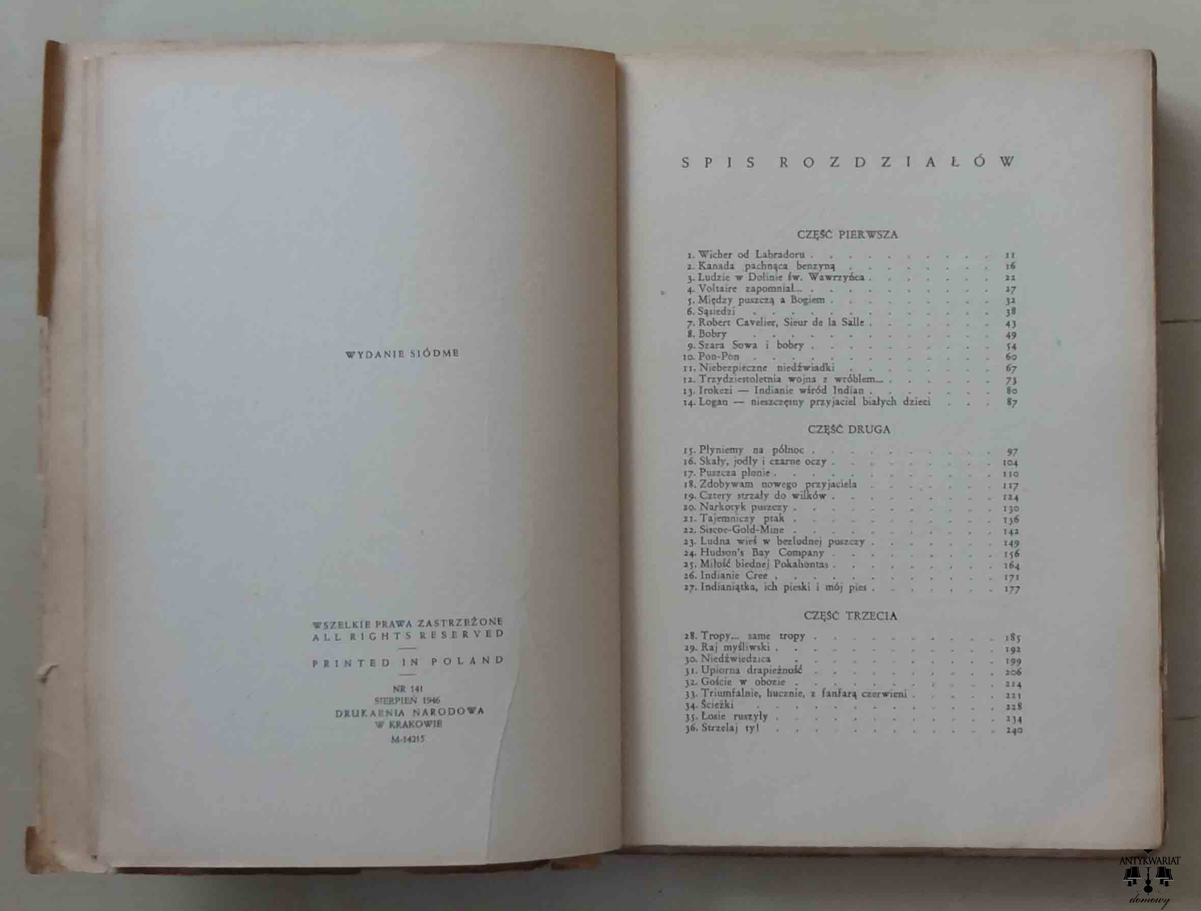 Czytelnik, sierpień 1946 rok. Stron 246. Okładka miękka. Książka w stanie doskonałym, jak na stan wyjściowy. Na stronie tytułowej, na dole, wykaligrafowana drobnym pismem dedykacja matki dla syna z 1946 roku.