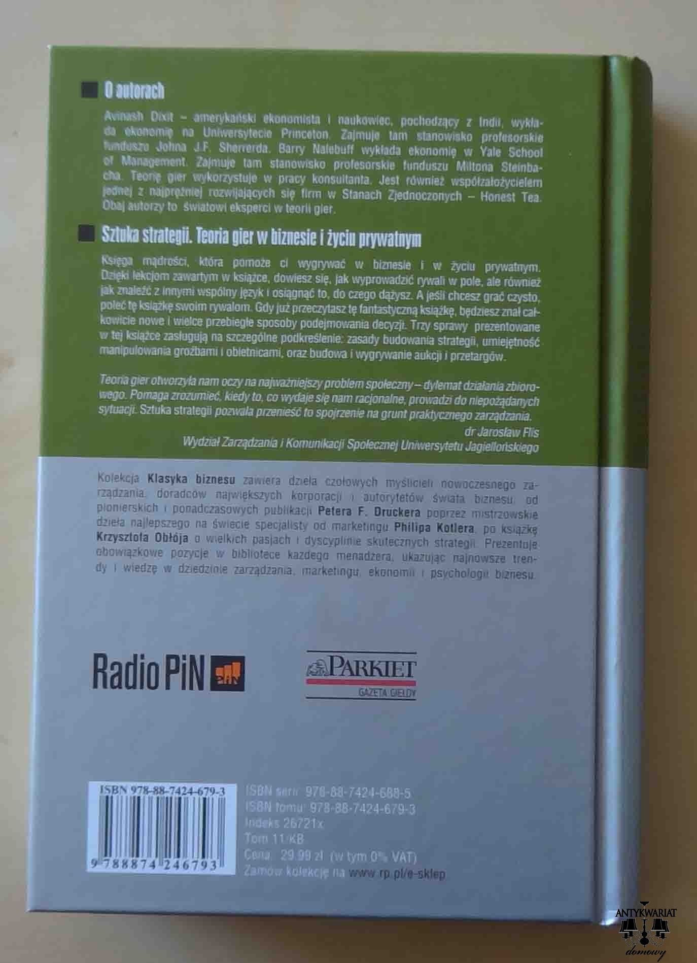 Avinash Dixit, Barry Nalebuff, Sztuka strategii. Teoria gier w biznesie i życiu prywatnym, Klasyka biznesu - tom 11