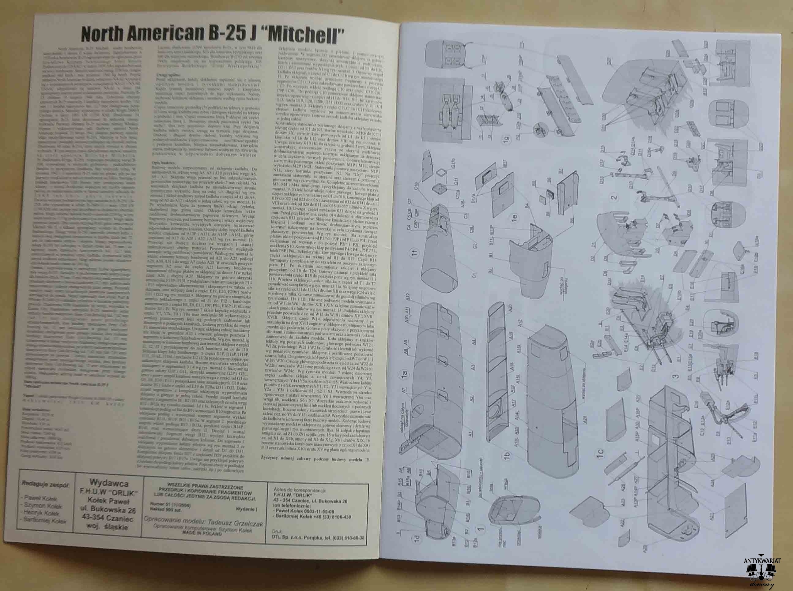 B-25 J "Mitchell", skala 1:33, Orlik Nr. kat. 051, 11/2008, model kartonowy - karton