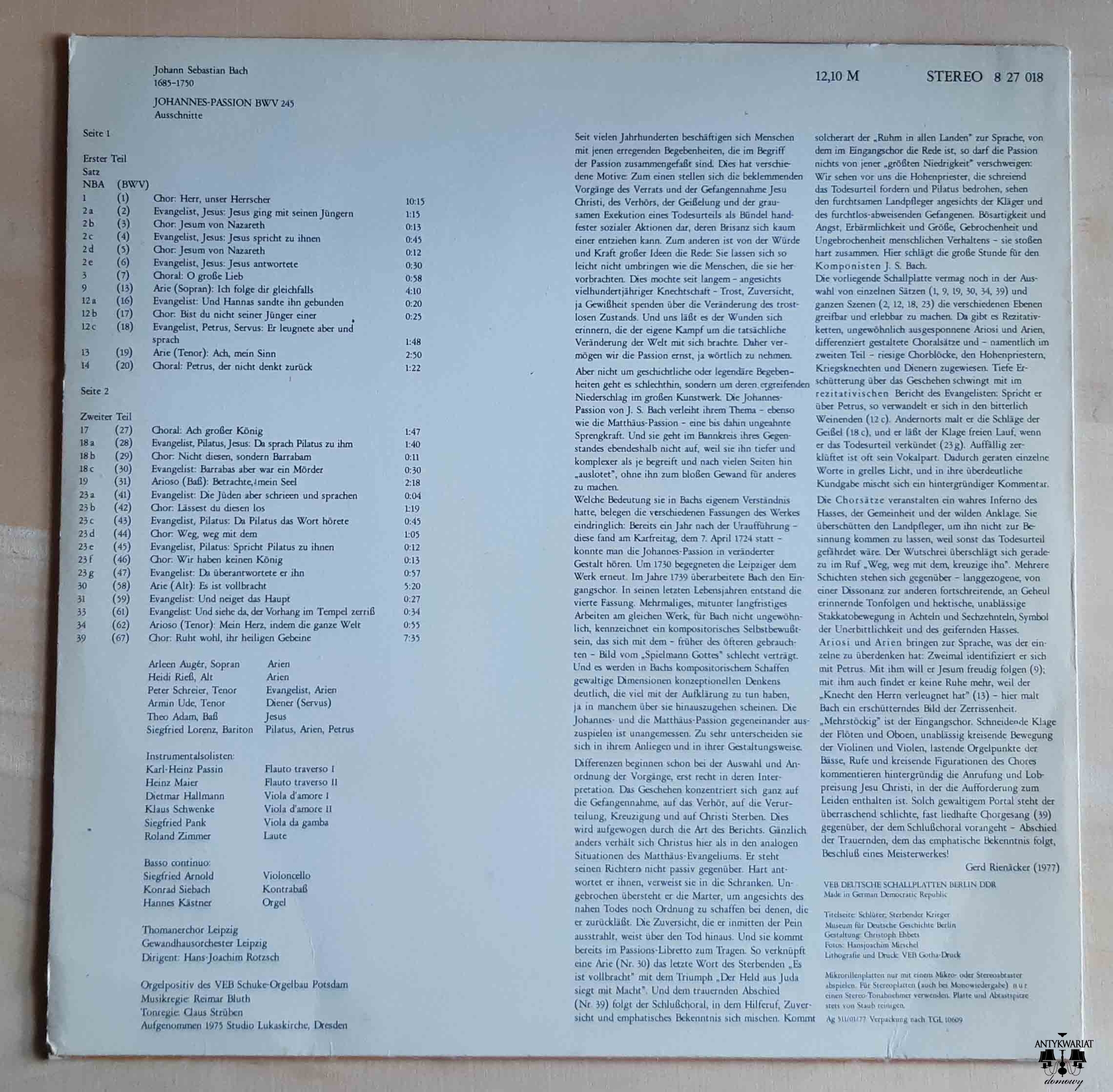 Bach. Johannes-Passion BWV 245, Ausschnitte. Płyta winylowa