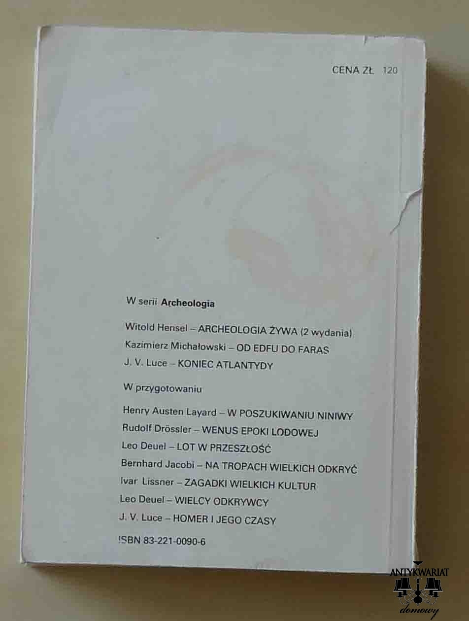 Wydawnictwa Artystyczne i Filmowe, Seria "Archeologia", Warszawa 1983. Stron 366. Okładka miękka, z wyraźnymi śladami użycia. Książka czysta, kartki nawet nie pożółkły (!), niestety rozkleja się - jak przystało na technologię z pierwszych lat stanu wojennego. Ale jest taka ciekawa, że sprzedajemy ją, choć to jest książka w zdecydowanie najgorszym stanie, z oferowanych w Antykwariacie. Wydaje nam się, że tym razem jakość treści powinna przeważyć jakość nośnika.