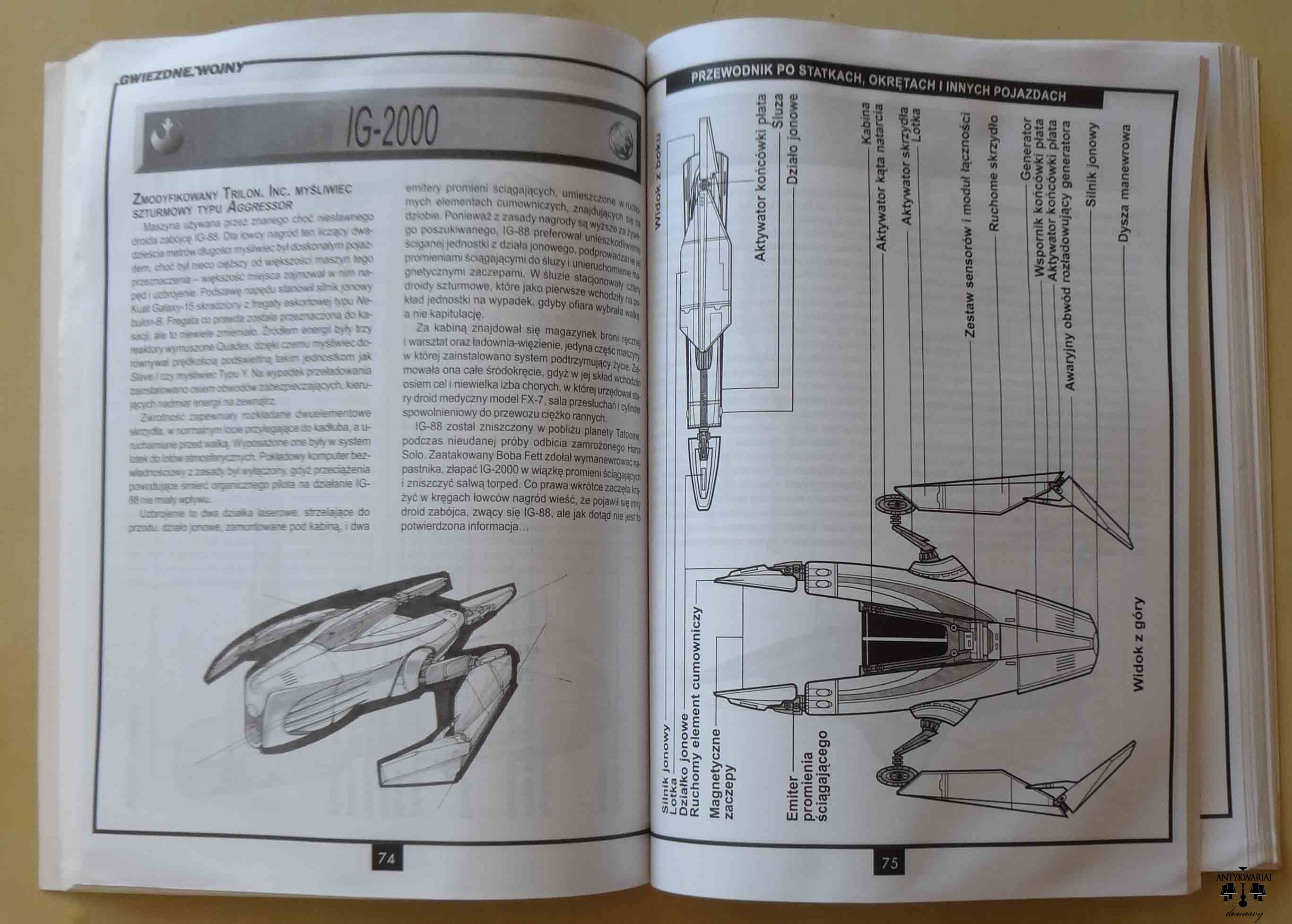 Bill Smith, Gwiezdne wojny. Ilustrowany przewodnik po statkach, okrętach i pojazdach gwiezdnych wojen. Przekład Bill Smith. Książka ma część stron pofalowanych, jakby były kiedyś zawilgocone, ale nie ma żadnych zacieków, ani śladów, poza pofalowaniem. Stan poza tym bardzo dobry, wszystko zresztą widać na zdjęciach.