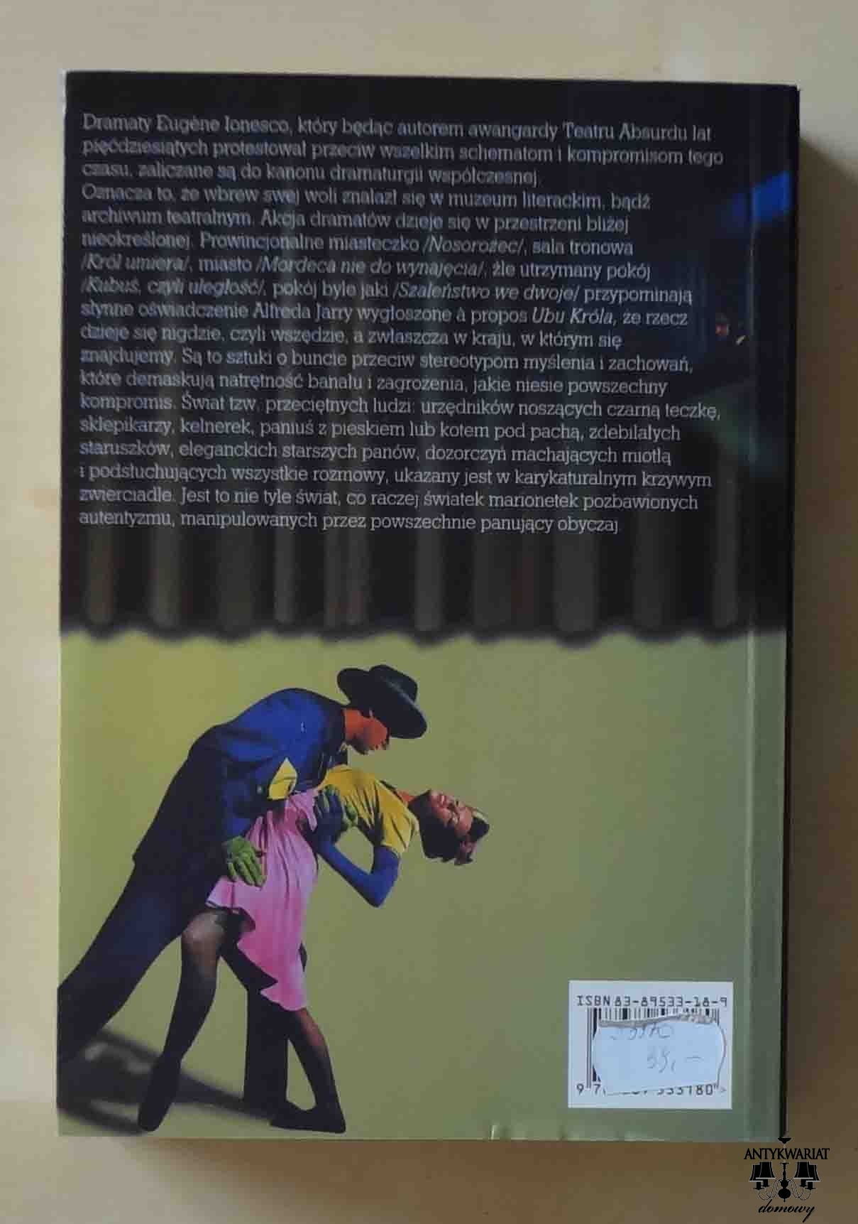 Eugene Ionesco, Kubuś, czyli uległość, Morderca nie do wynajęcia, Nosorożec, Król umiera, czyli ceremonie oraz Szaleństwo we dwoje. Przekład Jan Błoński, Jan Kott, Adam Tam.
