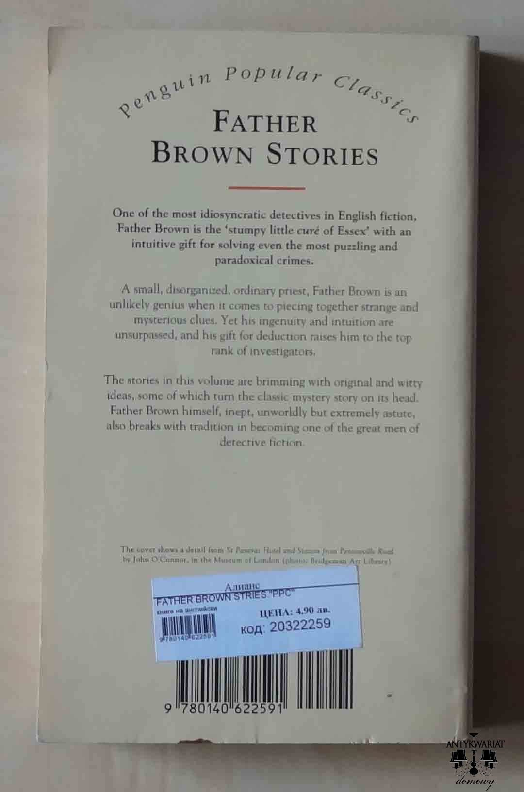 Książka wyjątkowa: "wersja oryginalna", wydrukowana w Anglii, ale ma nalepkę napisaną cyrylicą i z ceną w lewach. Zagadkowa sprawa, w sam raz dla Ojca Brown'a.