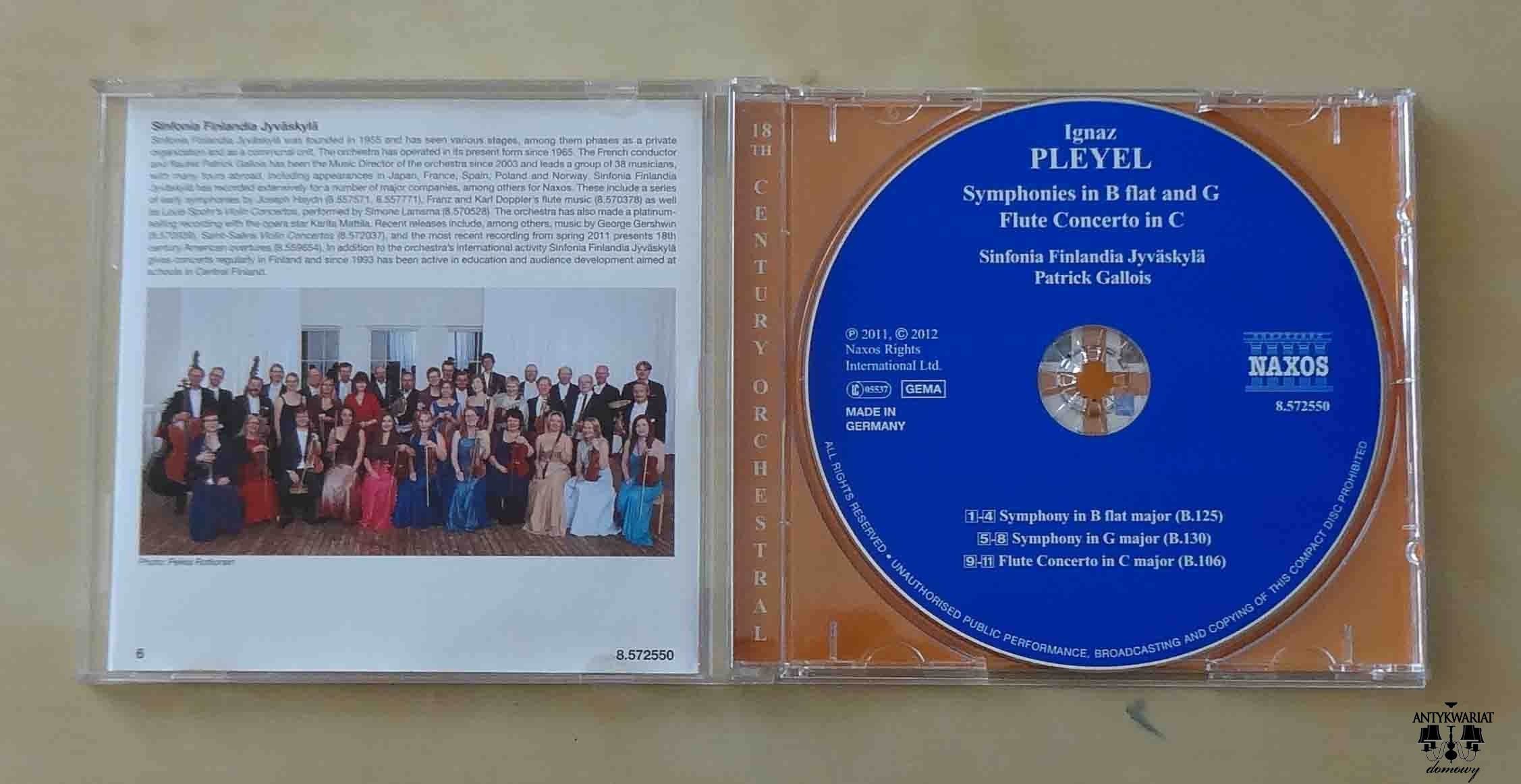 Ignaz Pleyel, Symhonies in B flat and G, Flute Concerto in C, płyta CD
