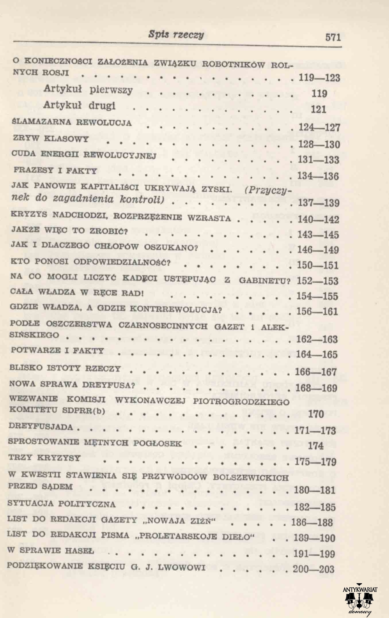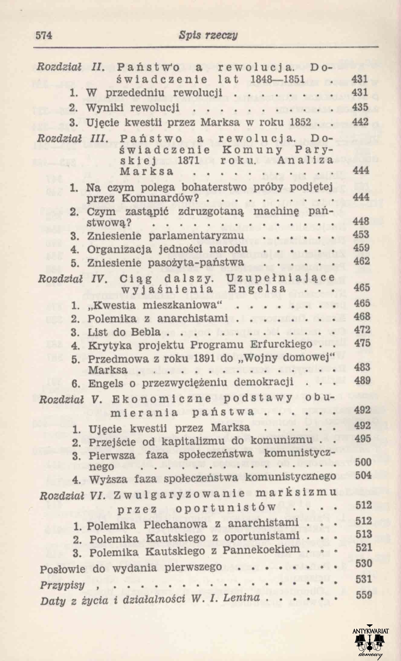 Tom wydany w 1951 roku - szczyt sowieckiej, stalinowskiej okupacji. Obywatele PRL-u oczywiście zaczytywali się. Lenin, niemiecki agent, toczony syfilisem (który doprowadził go ostatecznie do szaleństwa, demencji i śmierci), przywódca zamachu nazwanego "rewolucją październikową" (bo dokonano go w listopadzie), jeden z największych zbrodniarzy w historii ludzkości (czego dowodzą chociażby zebrane w oferowanej książce teksty, gdzie zadanie śmierci jest przyjęte jako jedyna metoda postępowania ze wszystkimi, którzy zostaną uznani za przeciwników, nawet w najbardziej błahych sprawach). To wie każdy historyk. O dziwo jego "dziełami" można handlować, a tym, co napisał gefreiter - nie. To i tak postęp, bo w sowieckiej strefie okupacyjnej wydawanie i czytanie Lenina było przymusowe. Teksty dotyczą wszystkiego (gospodarka, filozofia, nauka, polityka, kultura, ...), bo autor "zna się" na wszystkim. I zna się najlepiej, a jeśli ktoś inny zna się rzeczywiście, a nie po "leninowsku" (czyli nie ma "jedynie słusznej świadomości klasowej") to w istocie podpisuje, swoją kompetencją, wyrok śmierci na siebie (dobrze, jeśli nie na rodzinę i znajomych). Ot, system "gdie tak wolno duszyt czełowiek". Wszystko było i jest kłamstwem - pan tego świata, pan kłamstwa, po raz kolejny okazał swoją "troskę o człowieka".