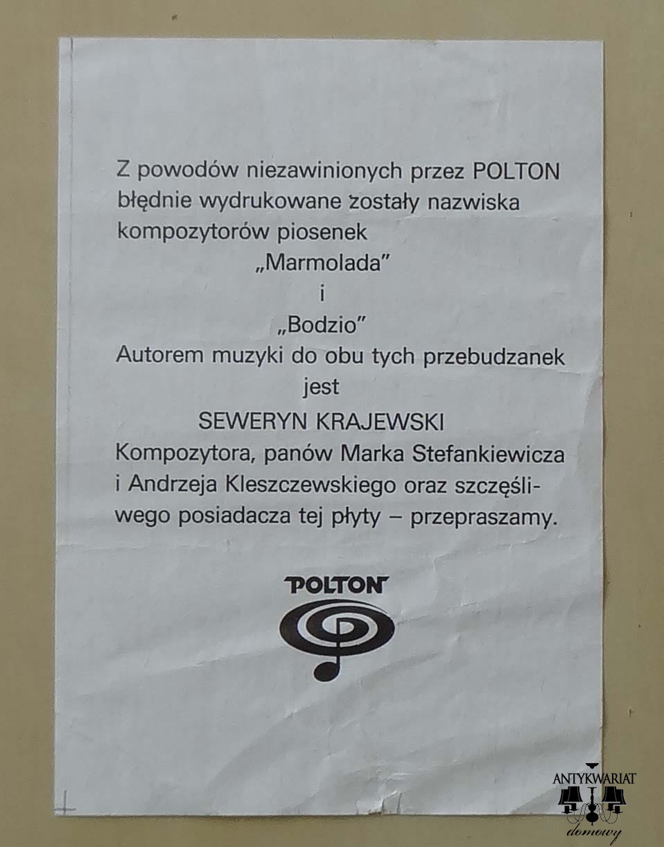 Polton LPP-015. Pierwsze wydanie. Płyta, plakat, errata. Wszystko w stanie bardzo dobrym - oczywiście trzeba pamiętać jakiej jakości był papier w PRL-u.