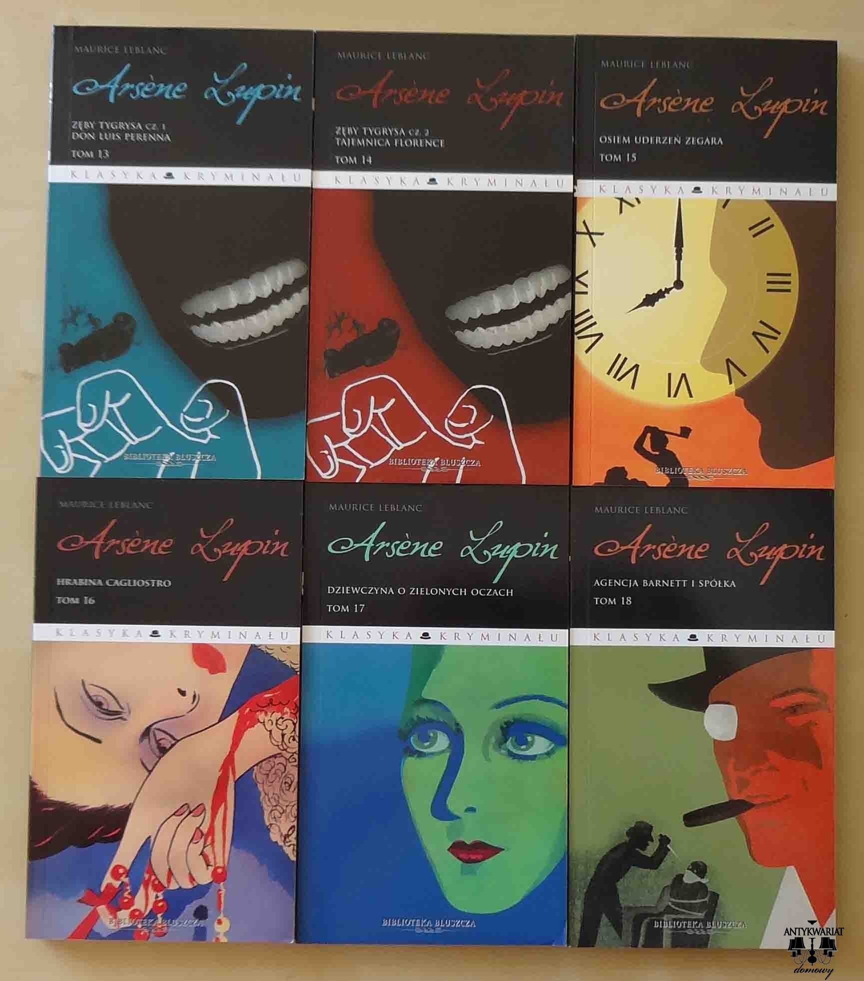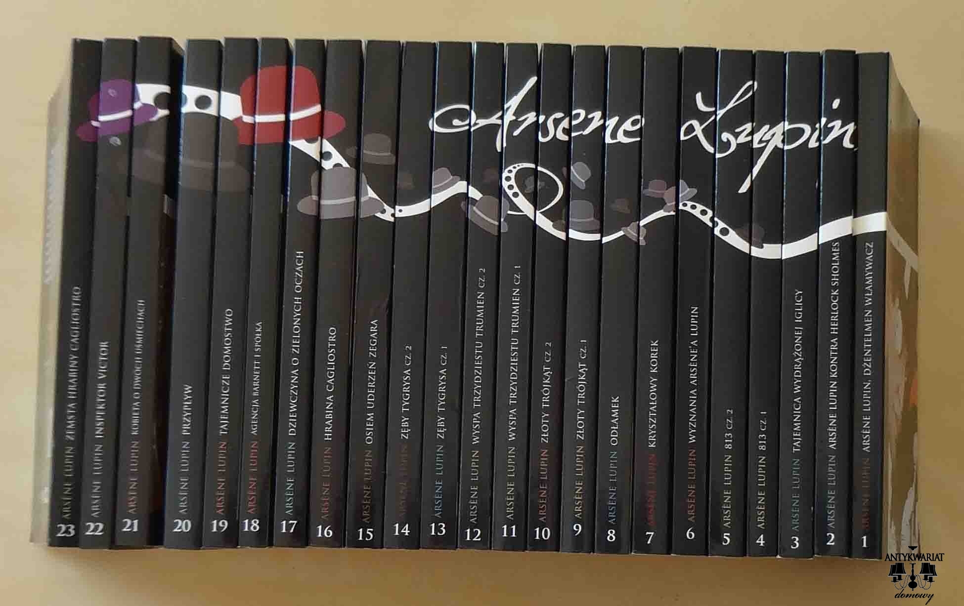 Komplet tworzą: 1 - Arsene Lupin, dżentelmen włamywacz, 2 - Arsene Lupin contra Herlock Sholmes, 3 - Tajemnica wydrążonej iglicy, 4 i 5 - 813, 6 - Wyznania Arsene Lupin, 7 - Kryształowy korek, 8 - Odłamek, 9 i 10 - Złoty trójkąt, 11 i 12 - Wyspa trzydziestu trumien, 13 i 14 - Zęby tygrysa, 15 - osiem uderzeń zegara, 16 - Hrabina Cagliostro, 17 - Dziewczyna o zielonych oczach, 18 - Agencja Barnette i Spółka, 19 - Tajemnicze domostwo, 20 - Przypływ, 21 - Kobieta o dwóch uśmiechach, 22 - Inspektor Victor, 23 - Zemsta Cagliostro.