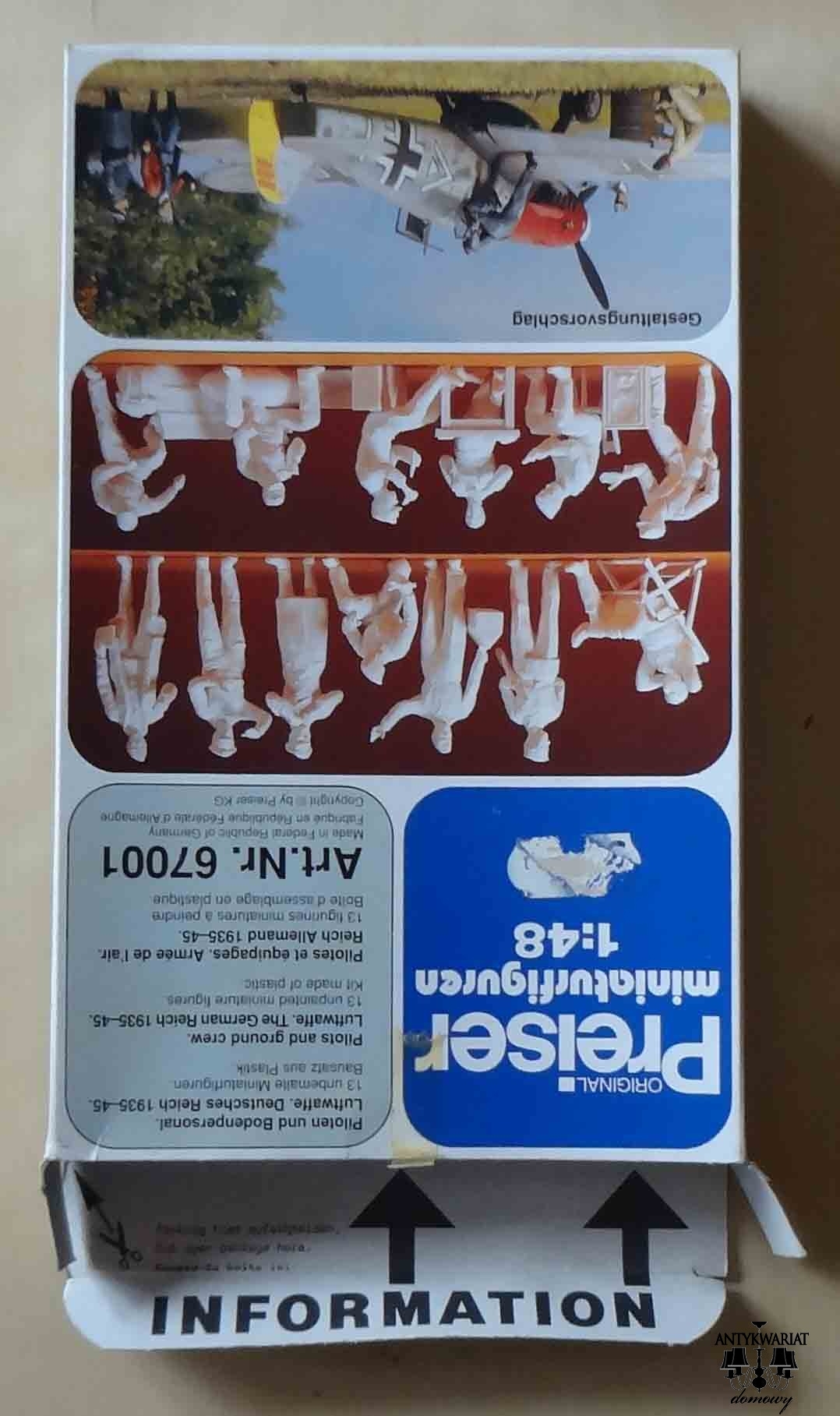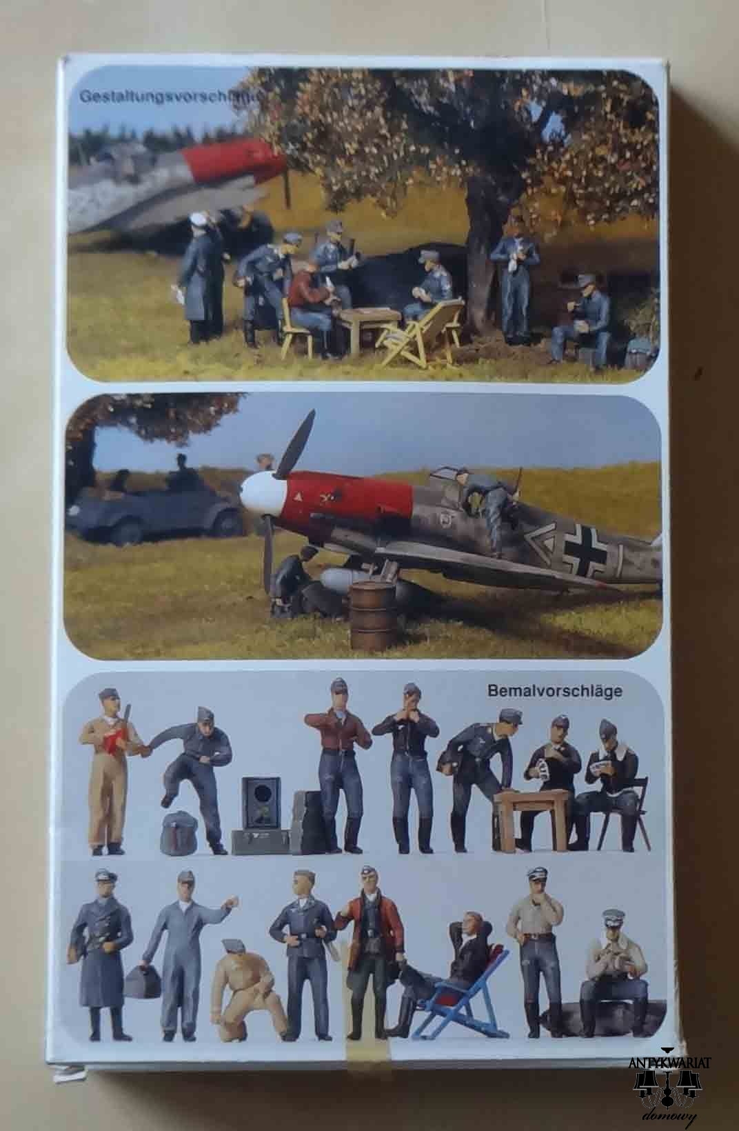 Luftwaffe, III Rzesza, lata 1935-45. 32 figurki pilotów i techników z akcesoriami i z dwoma psami, wszystko w skali 1:72. Figurki wyprodukowano w Niemieckiej Republice Federalnej. Ani III Rzesza, ani NRF (czy RFN, jak zwał tak zwał) nie istnieją, ale figurki istnieją i są w stanie dziewiczym.