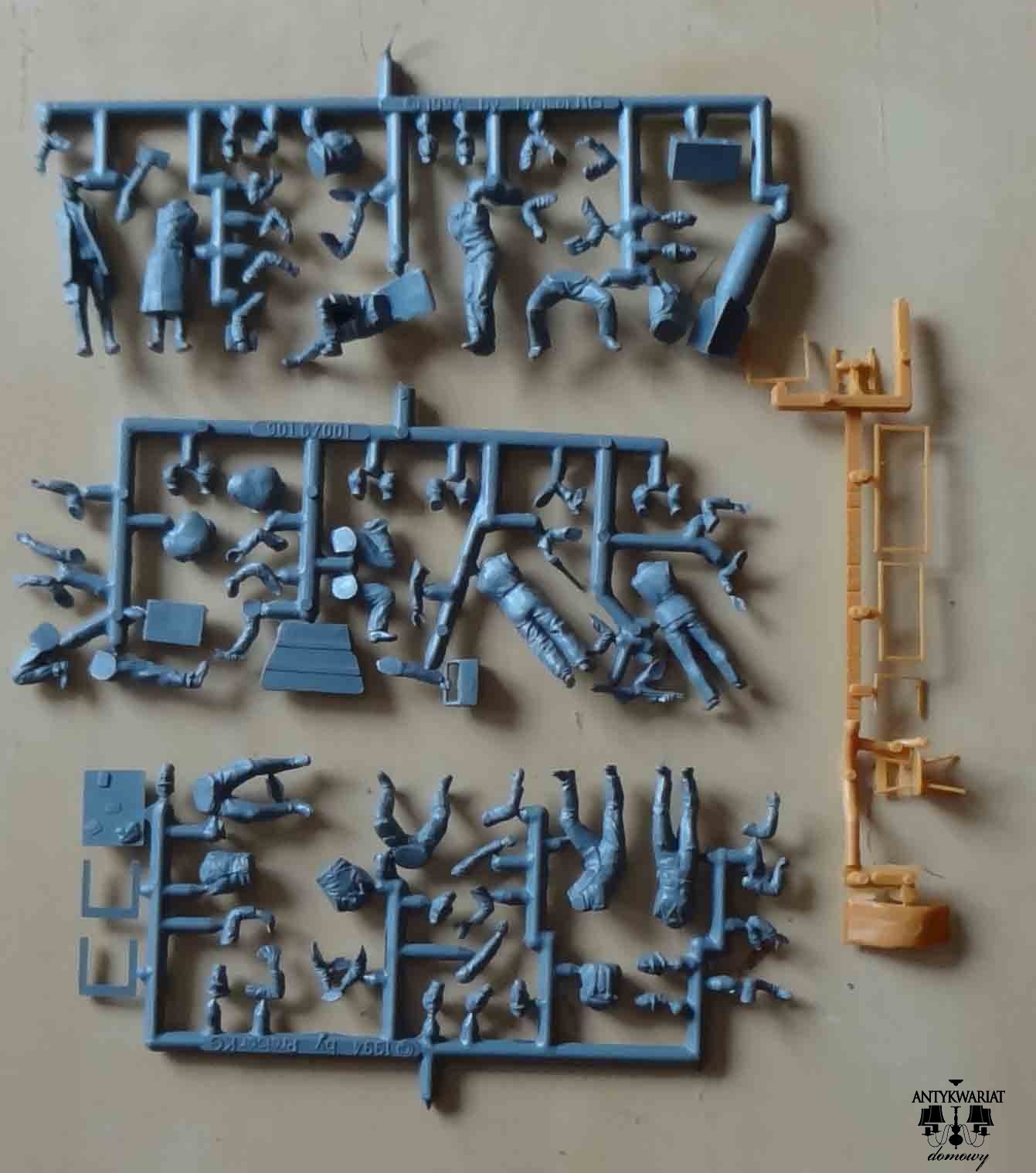 Oprócz żołnierzy w zestawie wszystkie drobiazgi pokazane na pudełku: broń, granaty, lornetka, bagnety, saperka, menażki, skrzynia, itp.