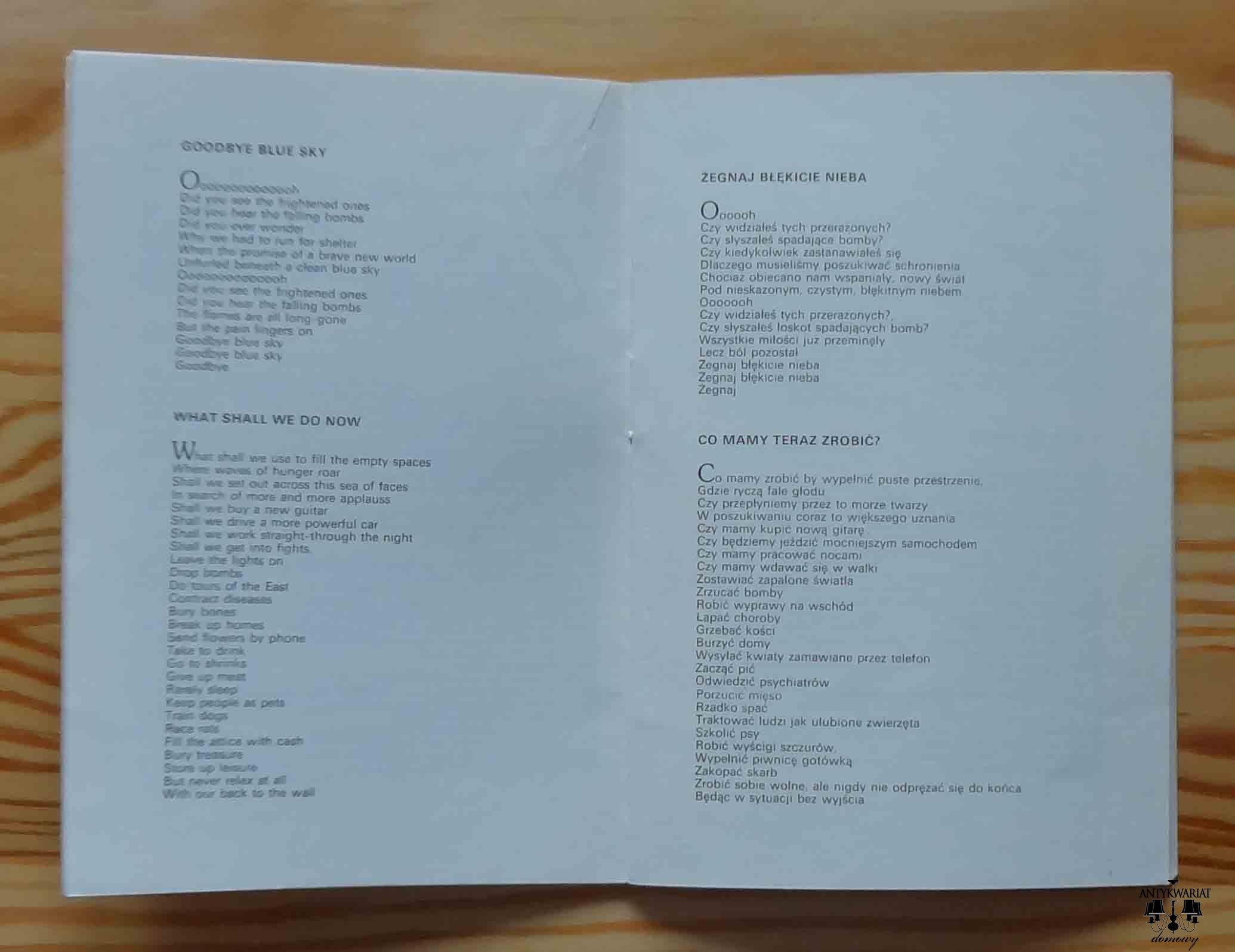 Pink Floyd, The Wall, teksty angielskie i polskie tłumaczenia. Wydawca skrywa się za murem tajemnic: bo oto ani autor tłumaczeń nieznany, ani rok wydania, nawet strony nie są numerowane. Jak mur, to mur.