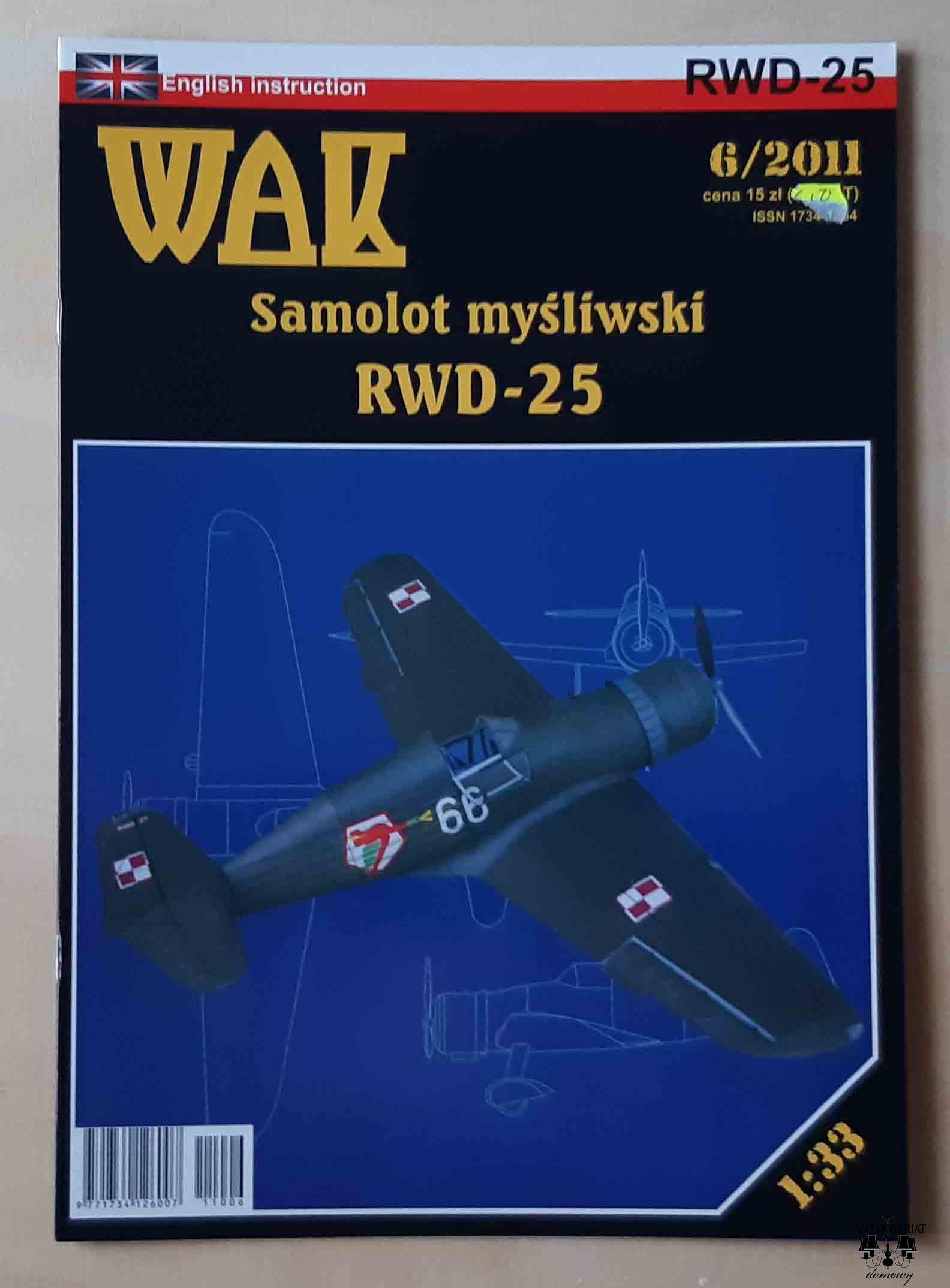Samolot myśliwski RWD-25. WAK 6/2011. Skala 1:33. Model kartonowy.