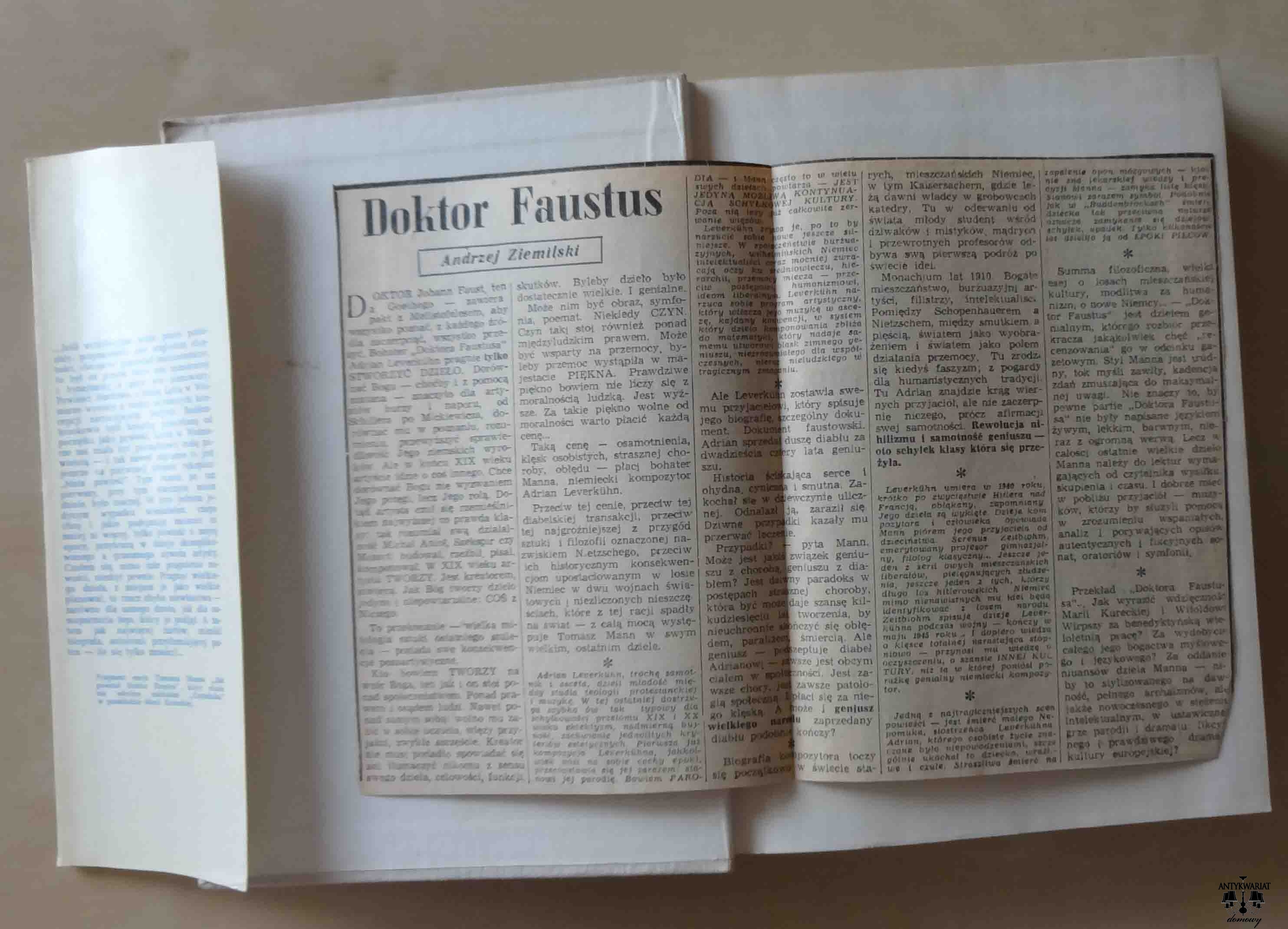 Tomasz Mann, Doktor Faustus. UWAGA! Książkę sprzedajemy razem z książką "Jak powstał Doktor Faustus". Jako gratis dla szczęśliwego nabywcy wycinek z Życia Warszawy (był taki dziennik) z recenzją książki.