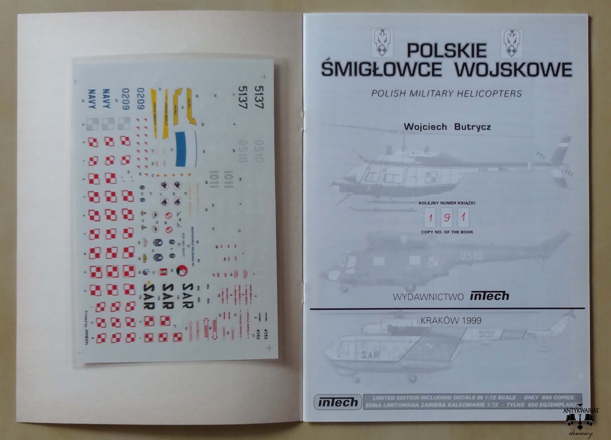 Wojciech Butrycz, Polskie śmigłowce wojskowe. Seria limitowana zawiera kalkomanie 1:72 - tylko 800 egzemplarzy. Kolejny numer książki: 191.